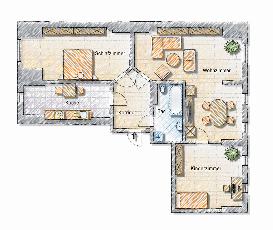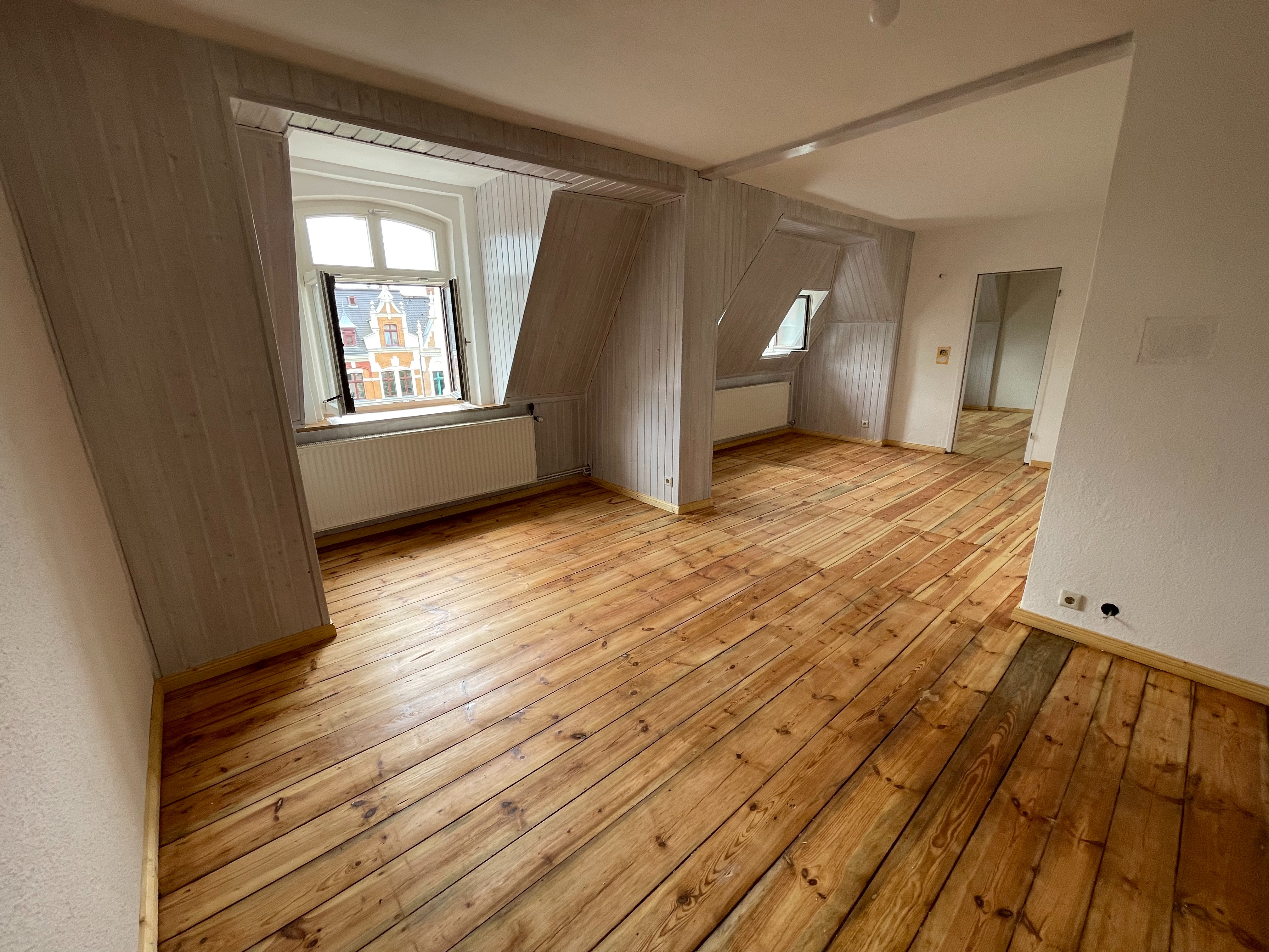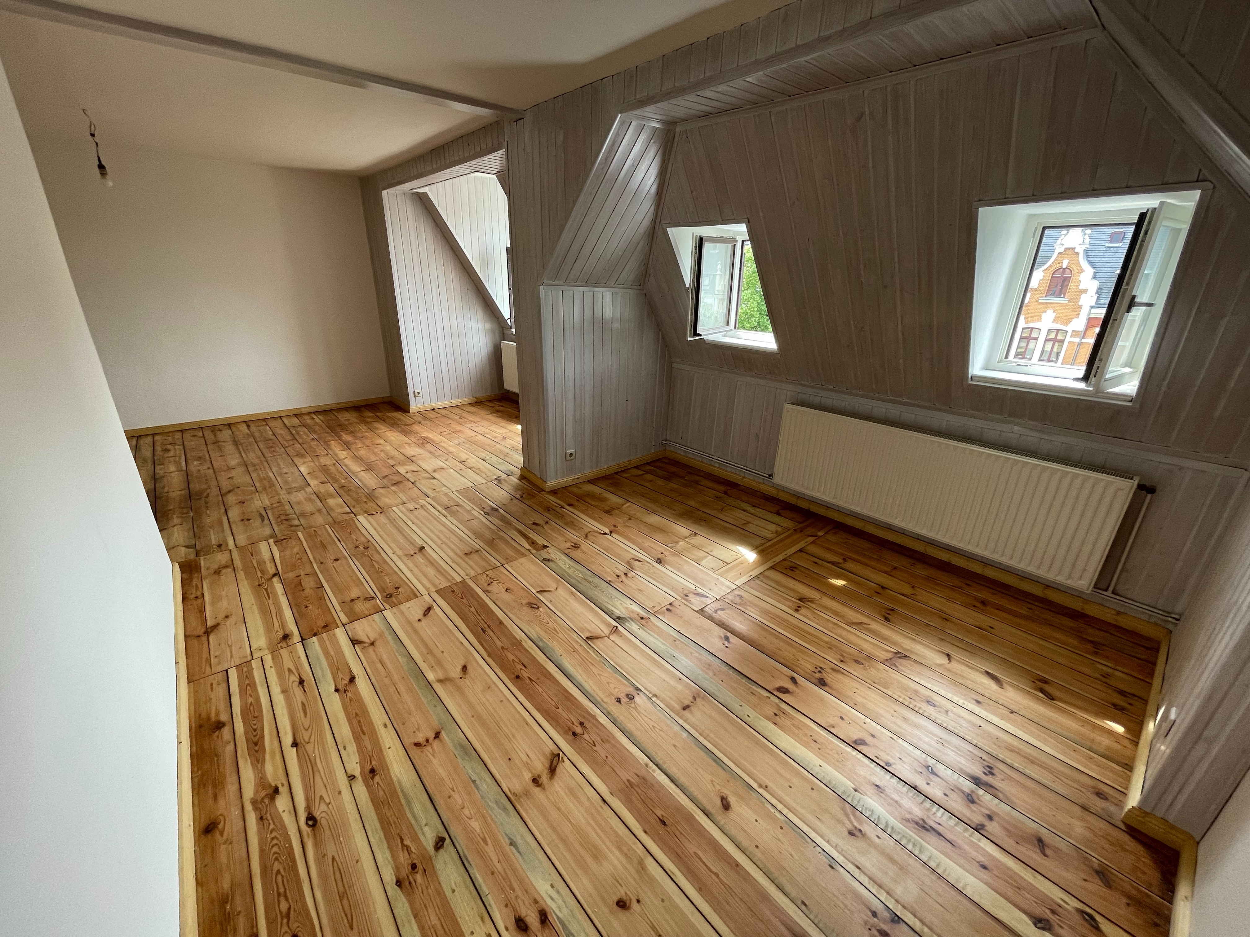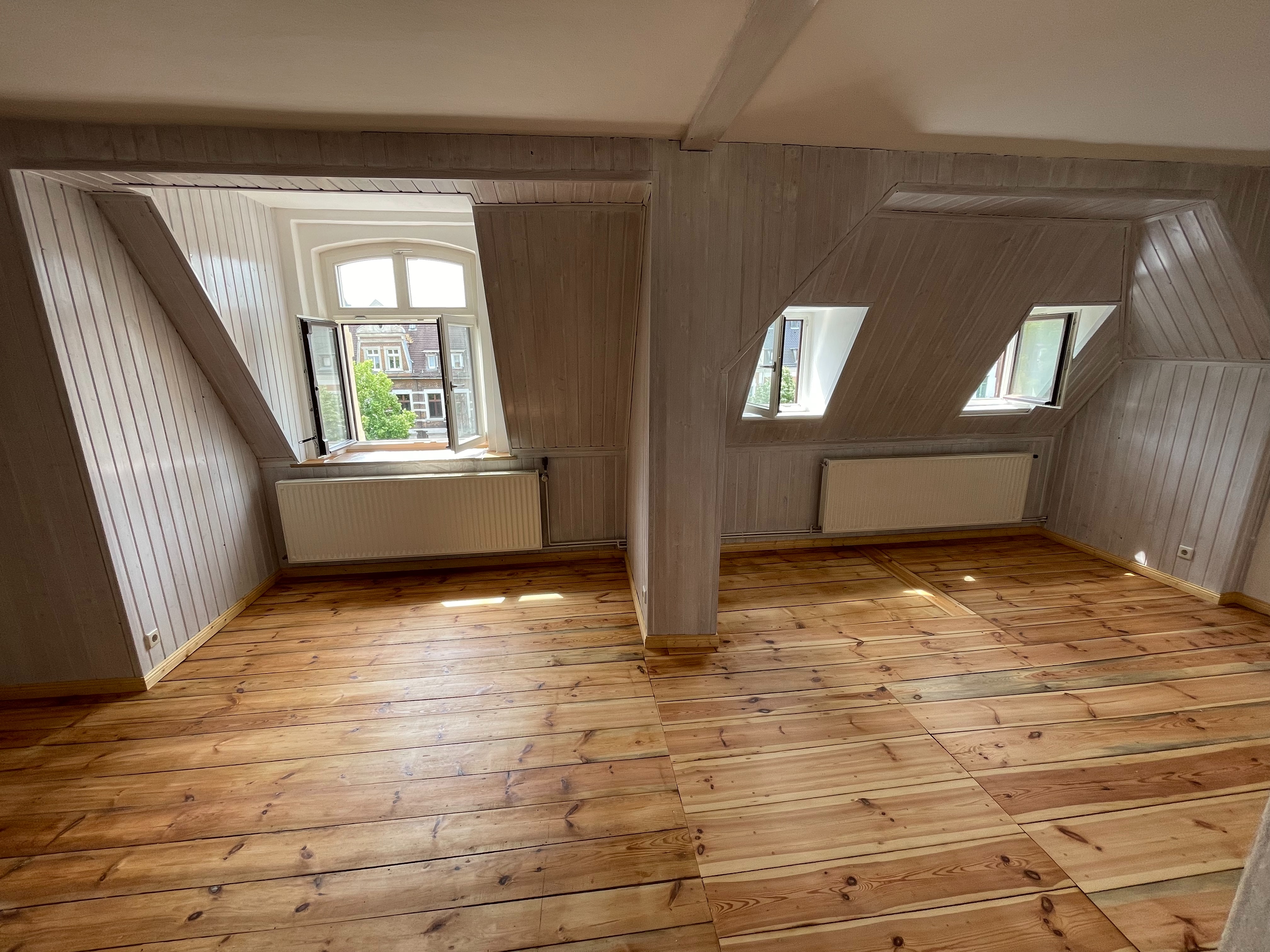 Die Wohnung besticht durch seinen individuellen Charakter, dem robusten Dielenboden und dem Altbauflair, welcher gepaart mit einer energetischen Sanierung Charme und Energieeffizienz vereint. Das große Wohnzimmer ist das Herzstück der Wohnung und bietet viel Raum zum leben, arbeiten und spielen. Der Tageslicht durchflutete Raum bietet unter anderem Platz für einen Essbereich.