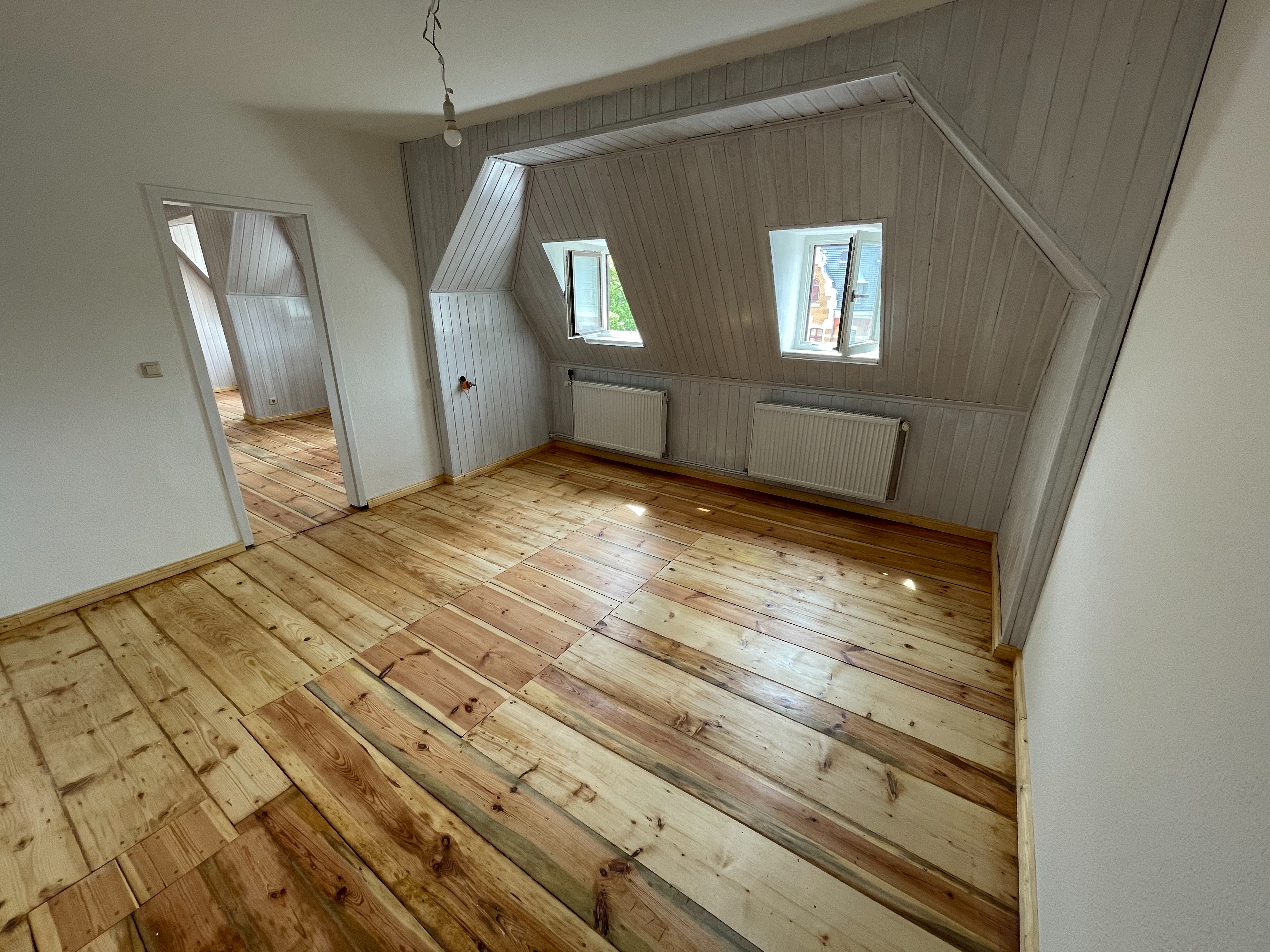 Sämtliche Räume sind mit historischem Dielenböden ausgestattet – das Badezimmer mit Fliesen.