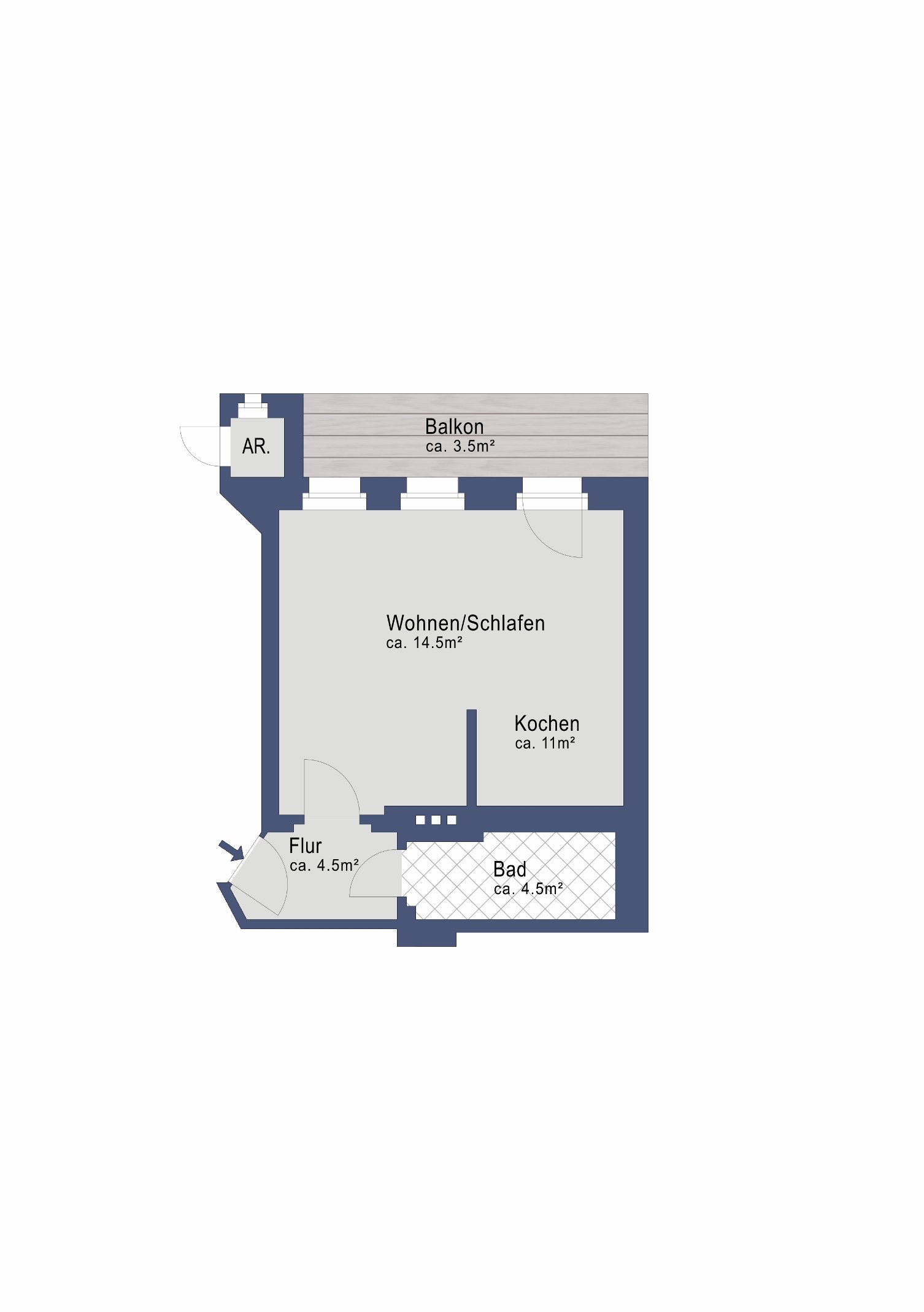 Helle hübsche 1-Raumwohnung mit Balkon in der Innenstadt