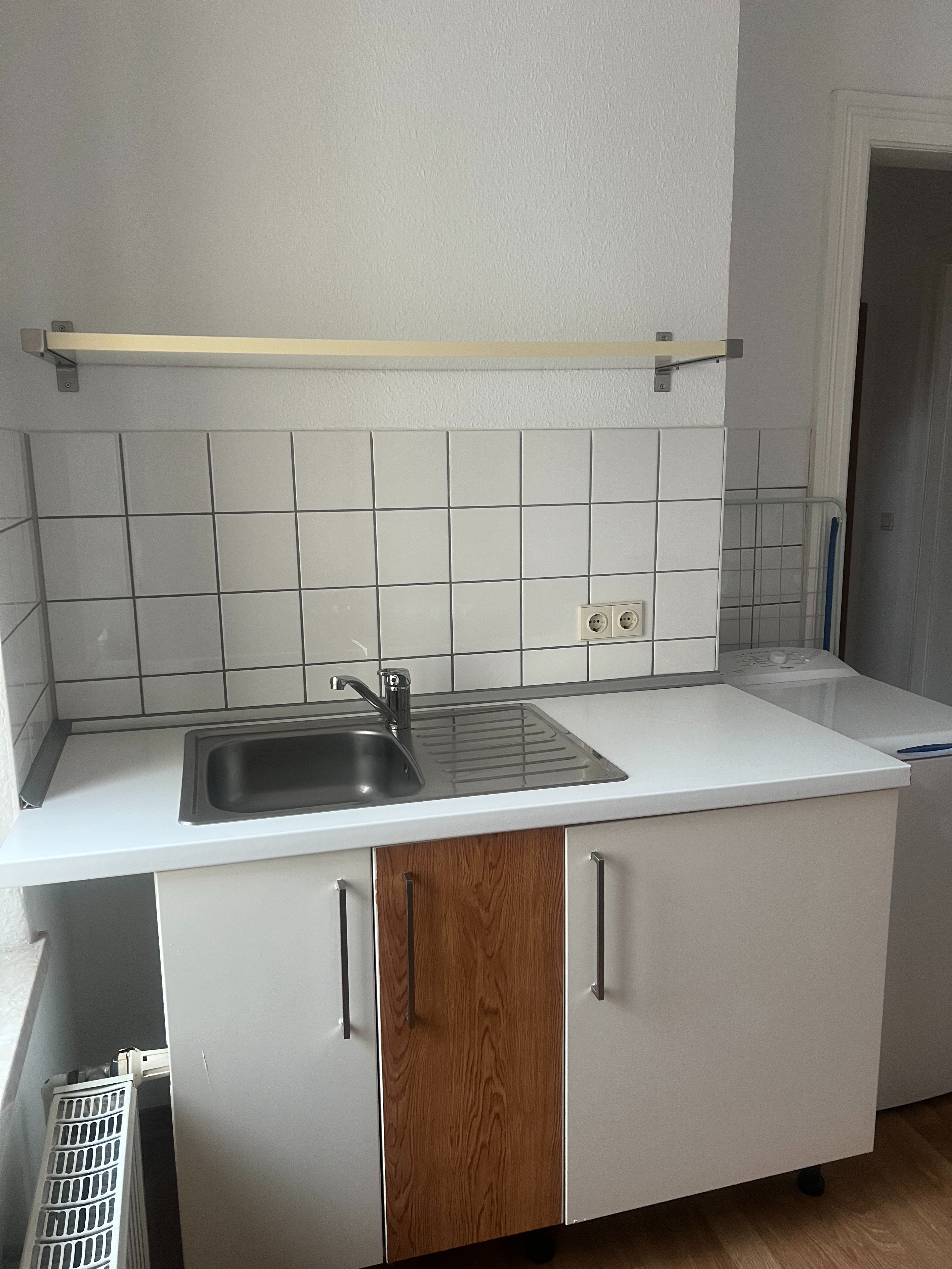 Ein Waschmaschinenanschluss ist in der Küche vorhanden.